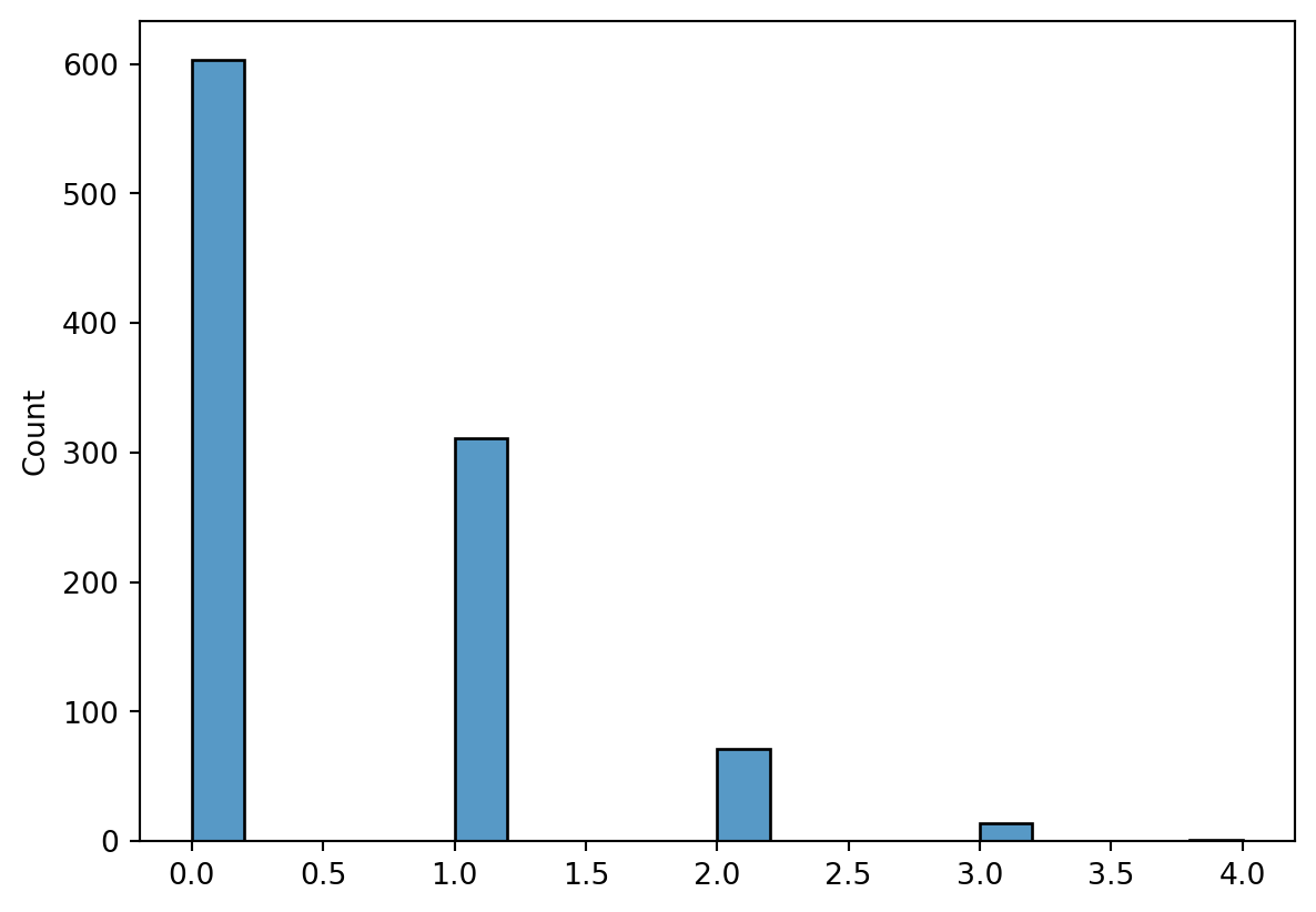 # Select 1000 draws from a binomial distribution with p = 0.2 and n = 100